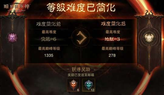 不仅如此,《暗黑破坏神:不朽》还为玩家们准备了丰厚的福利。玩家根据难度简化前所解锁的难度等级和巅峰等级,可获得相应的回馈奖励,最高可直接获得6颗强化不朽钥石和12颗不朽钥石,让你的不朽秘境好运加持,收获满满。