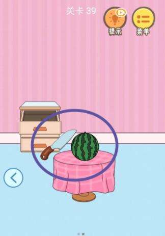 最后,用【水果刀】切开放到桌上的西瓜,游戏过关。