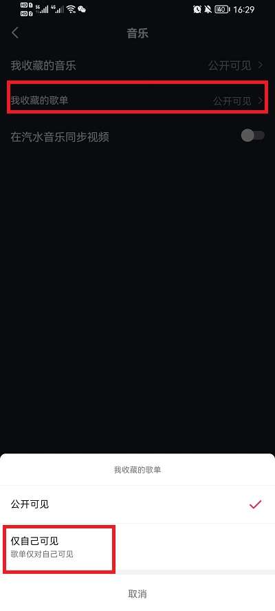 5、点击我收藏的歌单,再点击仅自己可见即可。