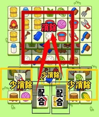 4、前期我们尽量少消除黄色区域的牌,用下方的暗牌区的牌配合消除即可。