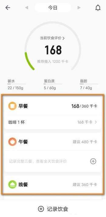 第六步:界面跳转,餐饮记录完成(如图所示)。