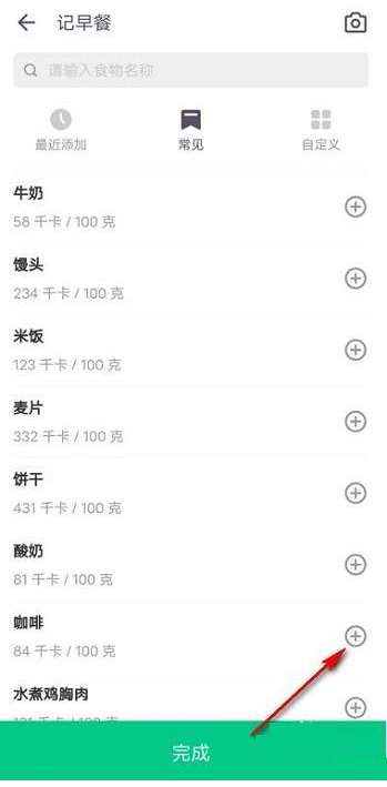 第四步:上下拖动,找到对应的食材,点击右侧加号(如图所示)。
