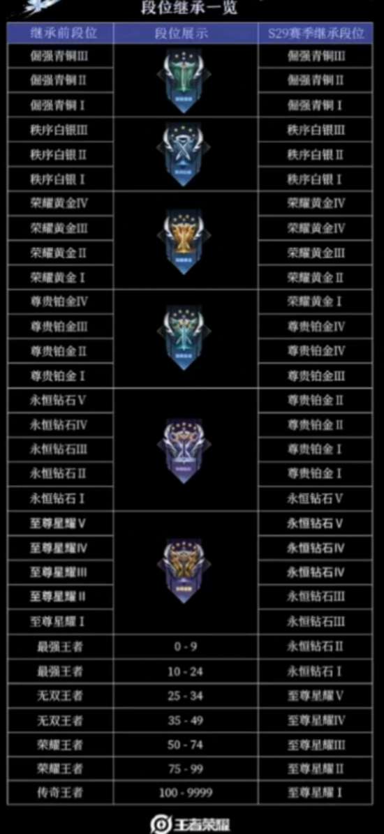 王者荣耀s30赛季段位继承表详情 最新王者荣耀s30赛季段位继承一览