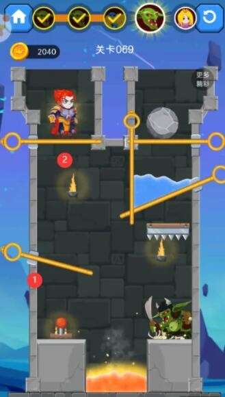 救救王子是一款很好玩的冒险闯关游戏,我们要帮助王子得到财富或美人哦。那么游戏第69关怎么过呢?下面是十大评测小编给大家带来的《救救王子》第69关通关攻略,感兴趣的小伙伴们一起来看看吧。