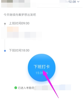 点击【下班打卡】。如果是上班时间,就点击【上班打卡】。