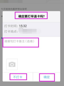如果确定要早退,可以在上面输入原因,再点击【确定】。正常情况下打卡下班,会提示打卡成功。