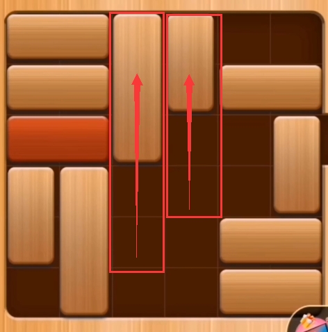 第三步:将第三列、第四列的两个竖立的积木均往上推(如图:)