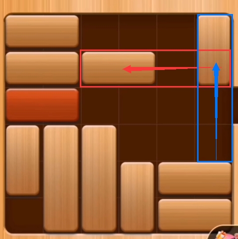 第六步:将第二排的横向的积木往左边推并把第六列的竖立的积木往上推(如图:)