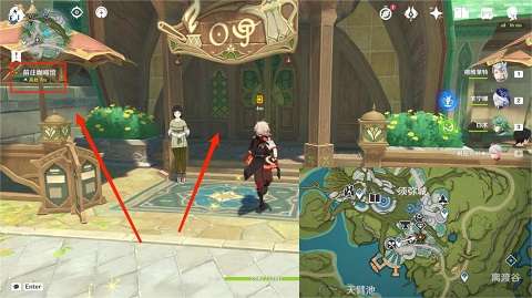 4、然后到达须弥城西南方向的锚点,按照图片所示前往咖啡馆。