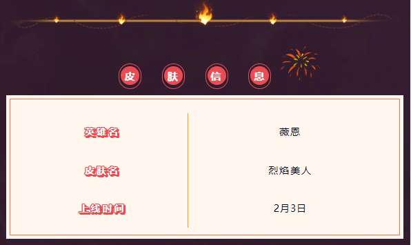走过路过别错过,你要的英雄联盟手游新皮肤预告内容他来了。新年让我们一起火一把,烈焰美人薇恩2月3日即将降临峡谷当中,各位小伙伴们,你们准备好了吗?那就不妨一起往下一览更多的预告详情吧。