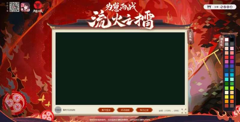 大人们可通过PC端、移动端或游戏内跳转进入应援板绘画页面,与应援寮的大人们一起绘制图案,为心爱的式神们应援。