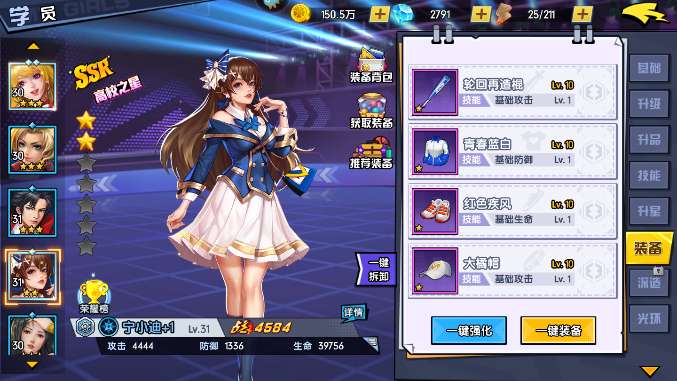 (3)推荐角色:林枫(游戏中主角)、宁小迪(开局白嫖角色)、奶茶妹(开局白嫖角色)、哈莉(SSR角色,可以用别的代替)。