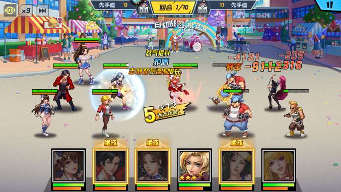 (2)大家自动战斗就好,上述的几个角色中有群攻,开场是可以保证清掉所有效果的,剩下的就是单挑BOSS了,这个只能被依靠战斗力来碾压。