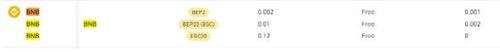 其实大部分的费率都相当低,也建议在提现时选取金额最低的转帐网络BEP2 ,大部分常见币种都只收取不到0.1%的费用。