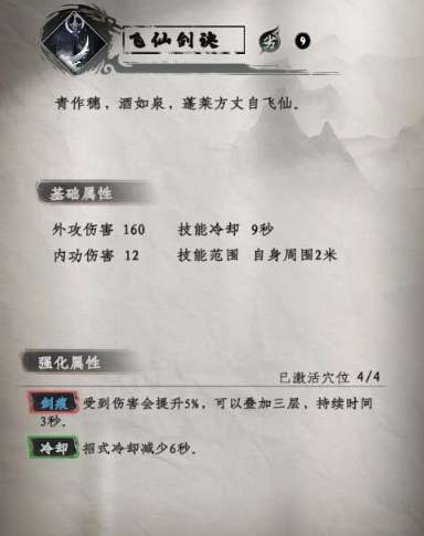 基础属性:外攻伤害 160,内功伤害 12,技能冷却 15秒,技能范围 自身周围2米