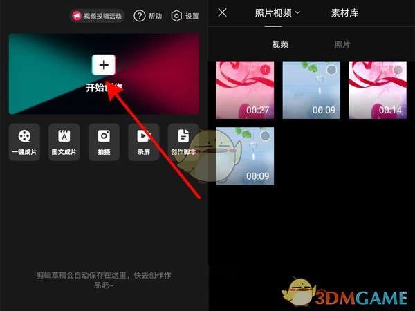 1、打开剪映app,点击开始创作,选择素材,点击添加。
