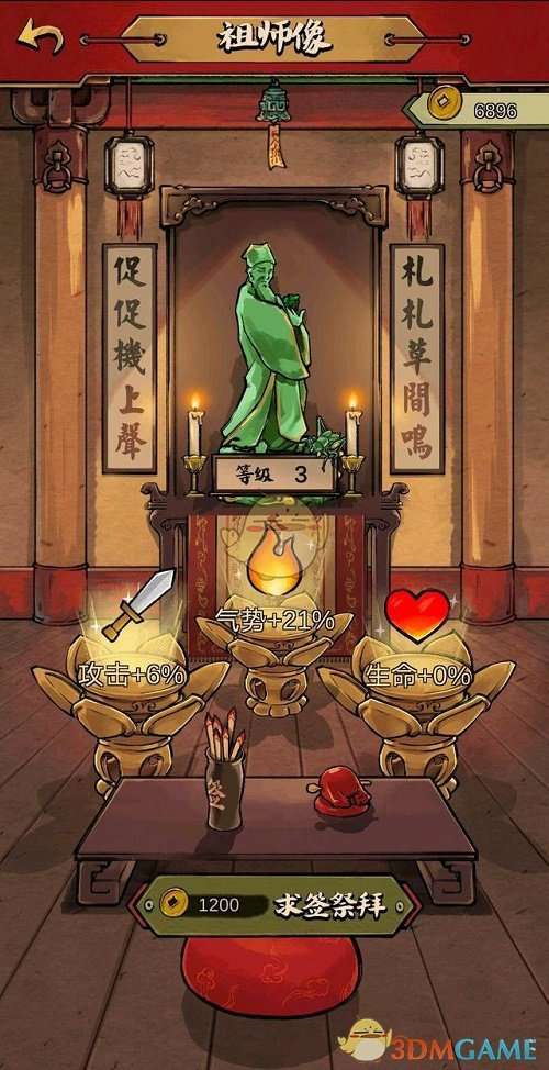 1、祖师像是一个给蛐蛐加buff的设定,需要花费铜币给蛐蛐祈福,祈福次数越多,蛐蛐的属性就越强。