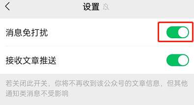 第四步,将消息免打扰关闭即可,这样就能及时收到公众号的消息提醒了。