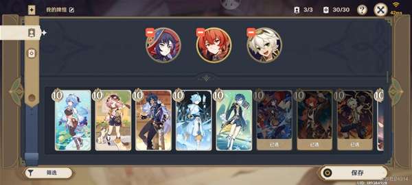 如果一个充能类牌、一个甜甜花酿鸡/治疗牌都没抽到,建议重新来过。至少一个充能牌存在时继续对局,至少一个甜甜花酿鸡存在时可以满目标。