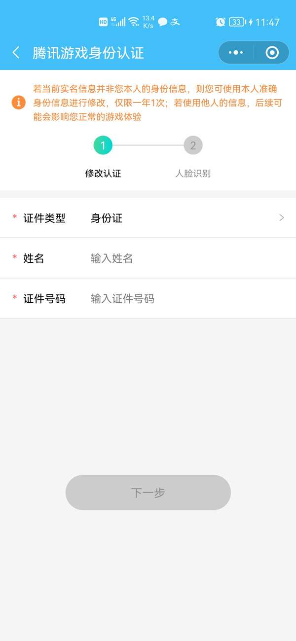 3、点击蓝色字体处,进入修改界面重新完成实名认证。