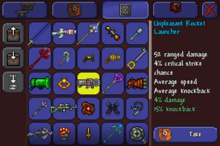 幻影弓一共会射出四把箭进行攻击,在击中敌人后,还会分裂出3把箭,而且这三把箭可以穿透物块。它的优势在于箭越多射的越多,比较适合对付血量高的BOSS。幻影弓最佳搭配是夜明石。这把弓箭是需要我们使用16个星旋碎片在远古操纵机处合成的