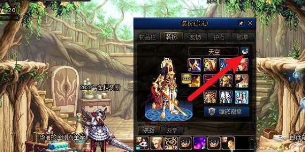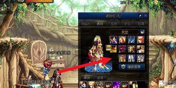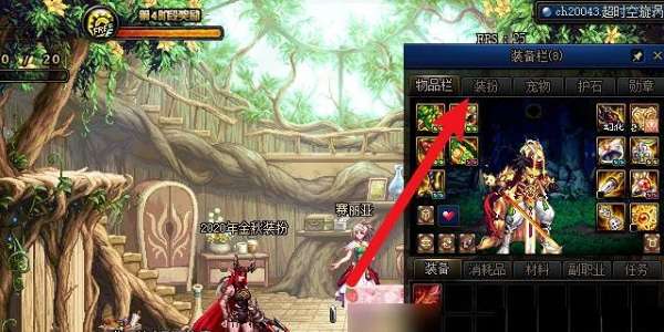 1.进入游戏后,首先点击打开角色的【物品栏】,然后点击菜单中的【装扮】选项,如下图所示;