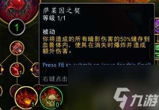 萨莱茵核心天赋,替换天灾打击后,造成存粹暗影伤害,可继承天灾打击/暗影之爪的所有效果,面板伤害高于暗影之爪。