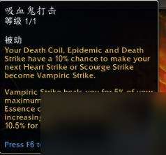 吸血鬼打击可由凋零缠绕、灵界打击、传染触发;吸血鬼打击治疗DKT3%的生命,治疗邪DK5%的生命。