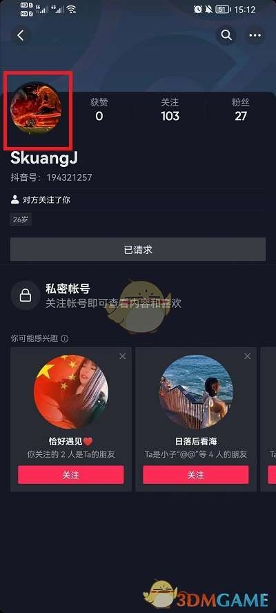1、打开抖音,在抖音中找到想要点赞好友头像的主页,在主页中点击头像;