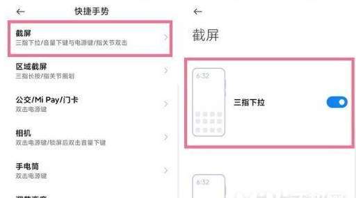 找到手机设置-选择设置-快捷手势-截屏,开启三指下拉右侧功能。