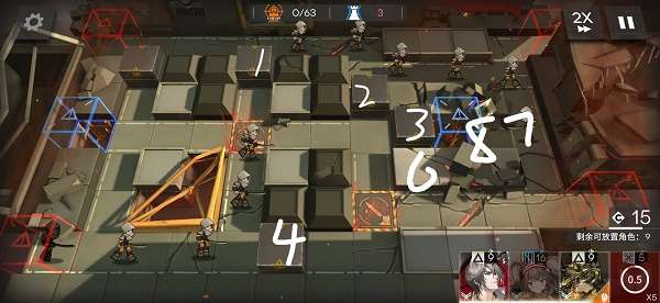 4、要求只能带洁哥和两个特种,另一个特种最好带快活,给大刀补刀,还可以在老鲤推不动的时候挡一下,放8位置。傀影效果很好,本体守门,影子补刀。洁哥顺带补点输出(开不开都无所谓),准能过。