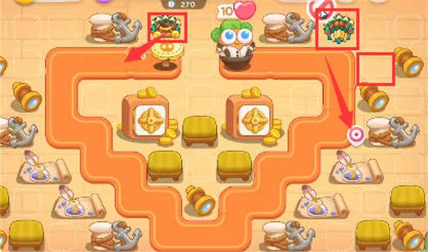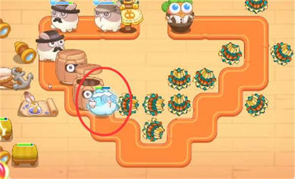 5:中间大道具可以有很多的钱,我们可以在中间放置一个满级的毒针还有输出的,然后在清理右侧的道具,然后有两个绳索兔子,需要及时清理。