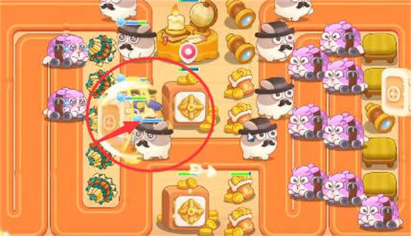 4:第三场的时候我们需要消灭场上所有的呆兔,我们先优先开辟完左侧的图然后我们在去攻击这个举盾的兔;