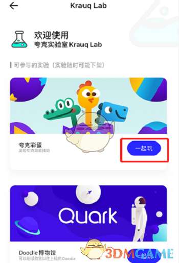 4、选择任意一个可参与的实验,点击一起玩图标即可进入。