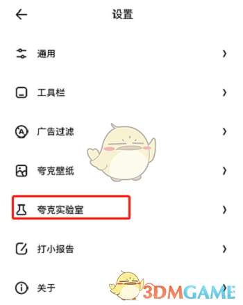 3、点击夸克实验室选项。
