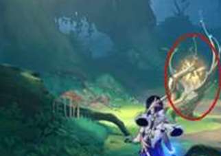 2、然后往前走会看到一颗发光的树。