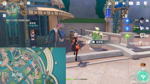 2、然后要前往「千织屋」与其他人会合,直接往地图的东南方向走,与林尼对话;