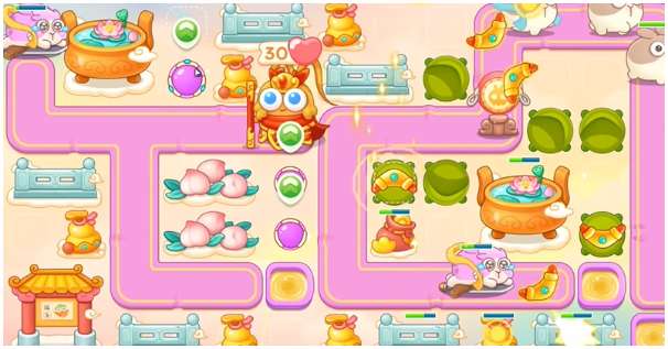 8、具体炮塔如下,等到不出兔子,可以陆续搬家到左边,保护萝卜。