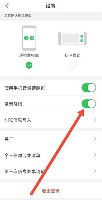 第四步:进入设置,然后把【录音降噪】的按钮开启即可。
