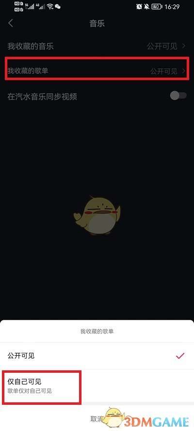 5、点击我收藏的歌单,再点击仅自己可见即可。