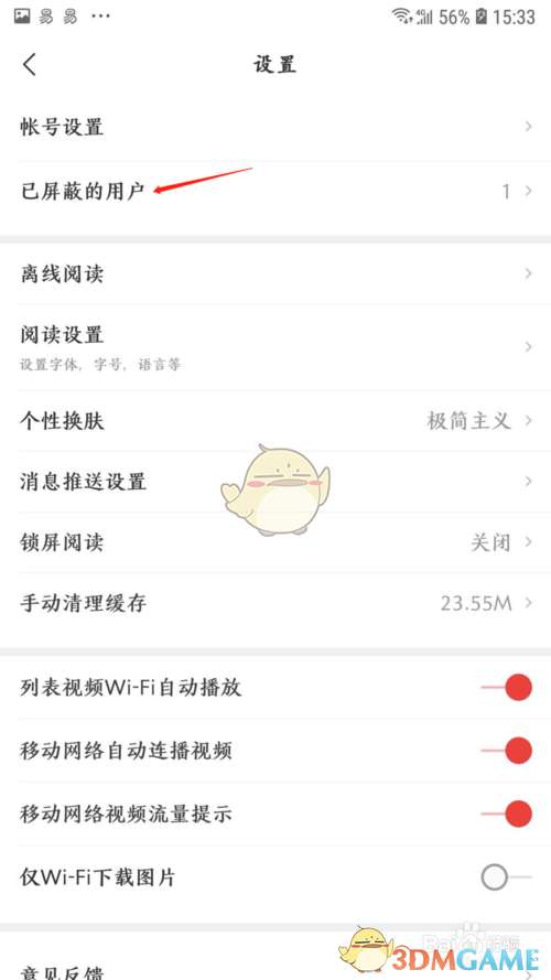 3、打开设置页面后,点击已屏蔽的用户;