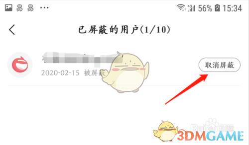 4、在这里就可以看到自己屏蔽的人,还能点击取消屏蔽。