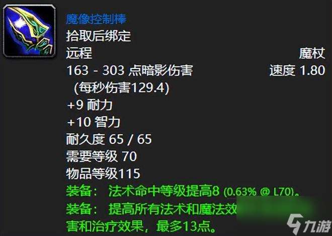 今日份压轴喵叔的话考量了很久,但是避免再抬上饰品略显尴尬,所以果断放弃了节点号角,把位子让给了同样禁魔监狱出品的魔像控制棒,这东西初期对于任何法系输出都适用,属性全还带命中的法伤魔杖,无论如何都要拿,就算是幽暗沼泽的黑色茎杆也要被他按在地上吊打,蓝色品质之下是其恐怖如斯的紫色水准,不过喵叔是真的不愿意去刷这个膈应人的副本,所以玩魔兽世界那么多年,硬是没拥有过这丫的,你敢信!