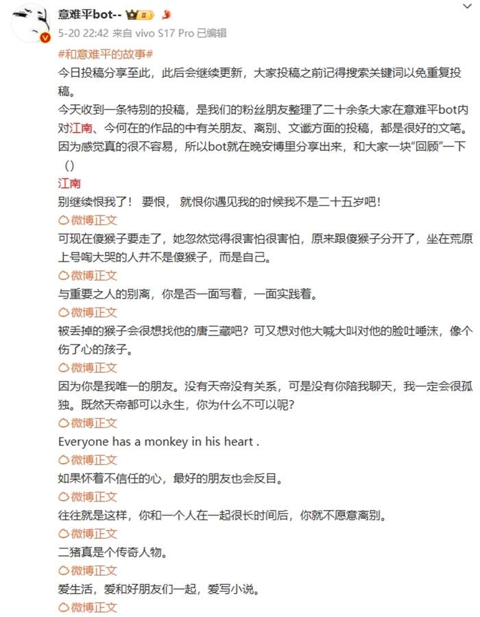 意难平Bot上甚至有专门为江南设置的版块。