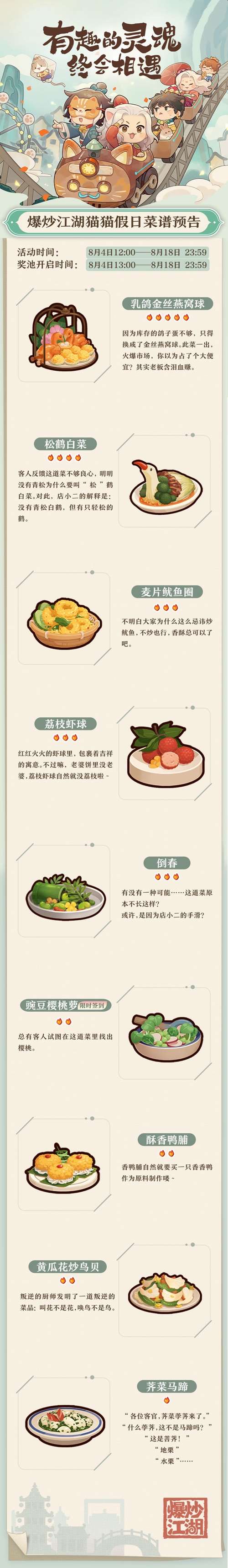 好啦~以上就是爆炒江湖猫猫假日最新活动奖池的所有菜谱预告内容啦~更多精彩还请期待哟~