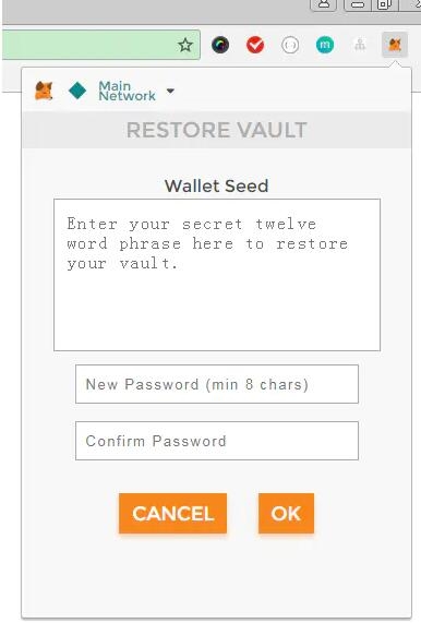 导入以前账号:点击Import Existing DEN链接,输入以前账号的12个英文助词词,输入密码,即可完成导入,如图2-3: