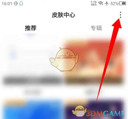 2、进入到皮肤中心后,点击右上角的三点。