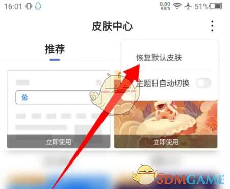 3、然后能看到弹出的页面中的恢复默认皮肤选项,点击恢复默认。
