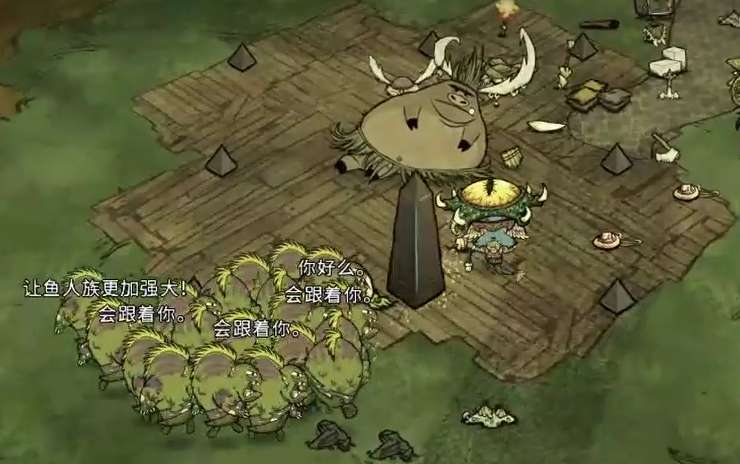 有范围攻击的boss,比如巨鹿和熊大,还是需要稍微注意一下的。虽然咱们鱼人堡垒可以0.5天一刷新,但是也不能让手下白白送死。说到这,其实鱼人不仅战斗能力非常优秀,工具人的属性也是直接拉满。