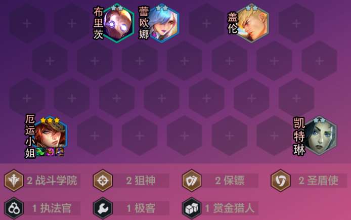 9、前期用2狙神+2保镖+2战斗学院+2圣盾使羁绊过渡。没有厄运小姐的话可以用克格莫或小炮暂替。前期的运营思路就是迅速升到七人口追三星厄运小姐,正常卡利息升级人口即可。